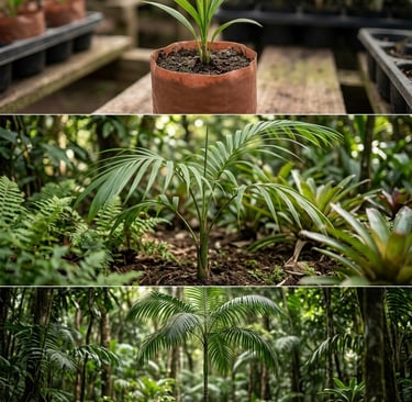 Los plantines de Palmitos de NATIVAS provienen del primer vivero habilitado como ASPEN (Área Productora de Semillas) por el INASE de una reserva natural privada registrada en Eldorado, provincia de Misiones. Esto garantiza trazabilidad, origen genético adecuado y producción responsable de especies nativas.